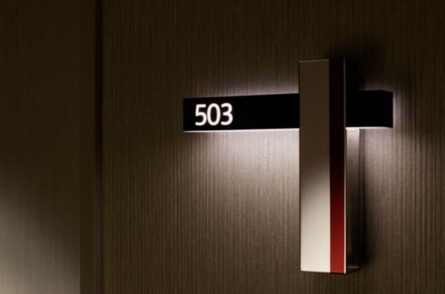 酒店門牌號標識設計的創意,房號與門牌號的結合點,這個是一個很貼切的設計手法,還可以把門禁系統結合到當中去,這是我們最重要的一個環節。