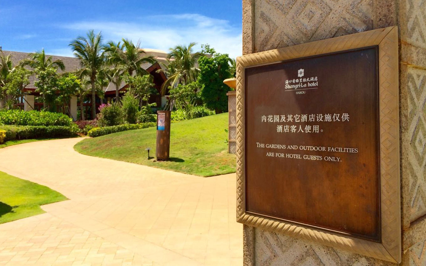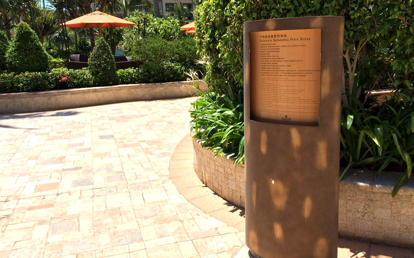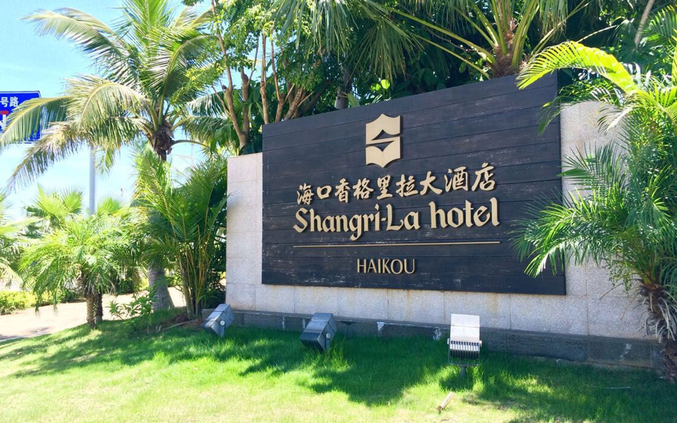 海口香格里拉大酒店位于海口市度假中心,海邊的天然美景、海岸線的風光、椰風的靜謐之處、這是海口度假天堂,海口香格里拉大酒店標識設計以海洋、海口椰樹風光為設計創意,室外以古銅打造陽光下的度假方案導視設計,室內以沙石雕花邊工藝制作,結合金屬質感的點綴,形成鮮明的品質感。